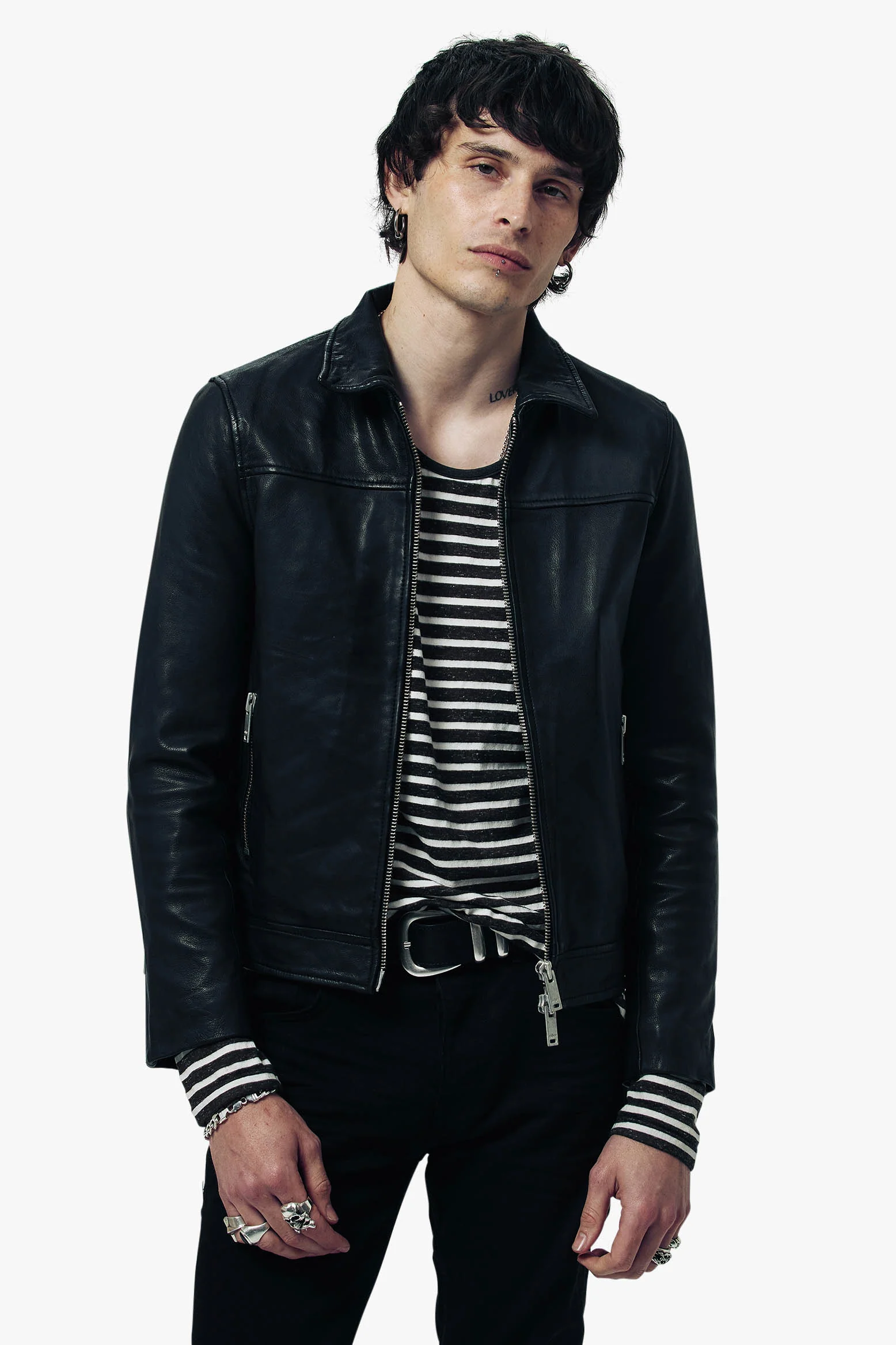 The Libertine Leather Jacket is a classic blouson Jacket that draws inspiration from the early 2000s garage rock scene, blending vintage attitude with modern refinement. Crafted from washed and waxed leather, it captures a worn-in, effortless vibe with a rich, lived-in feel. Signature raw silver metal hardware adds a touch of rebellious sophistication. A timeless piece with a rock-infused edge, designed for those who embrace both style and anarchy.