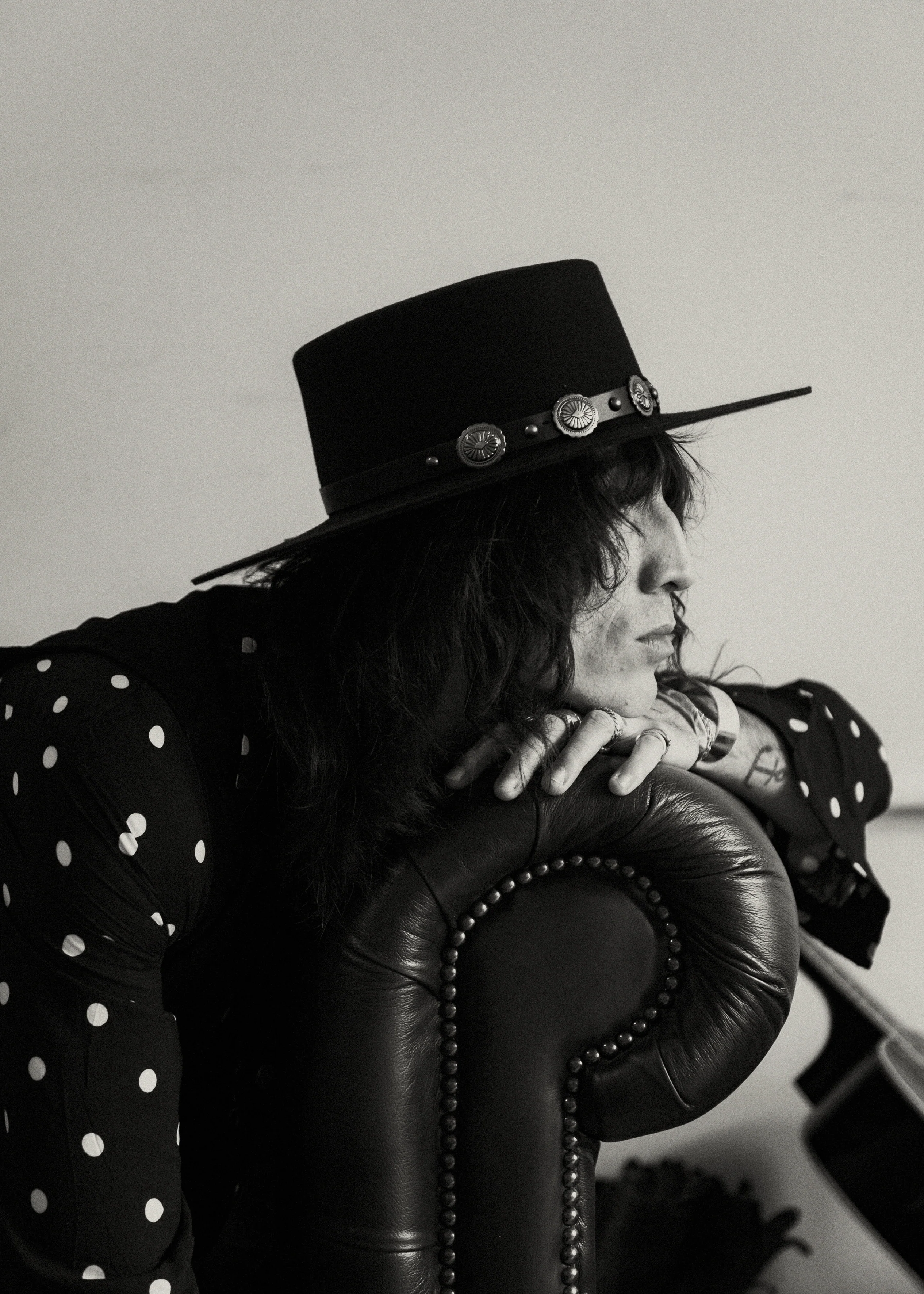The hat is finished with a stylish leather band and silver conchos, adding a touch of western-inspired charm to its classic design. Whether you're dressing up for a special occasion or adding a touch of sophistication to your everyday look, the Vaughan Boater Hat is the perfect choice.