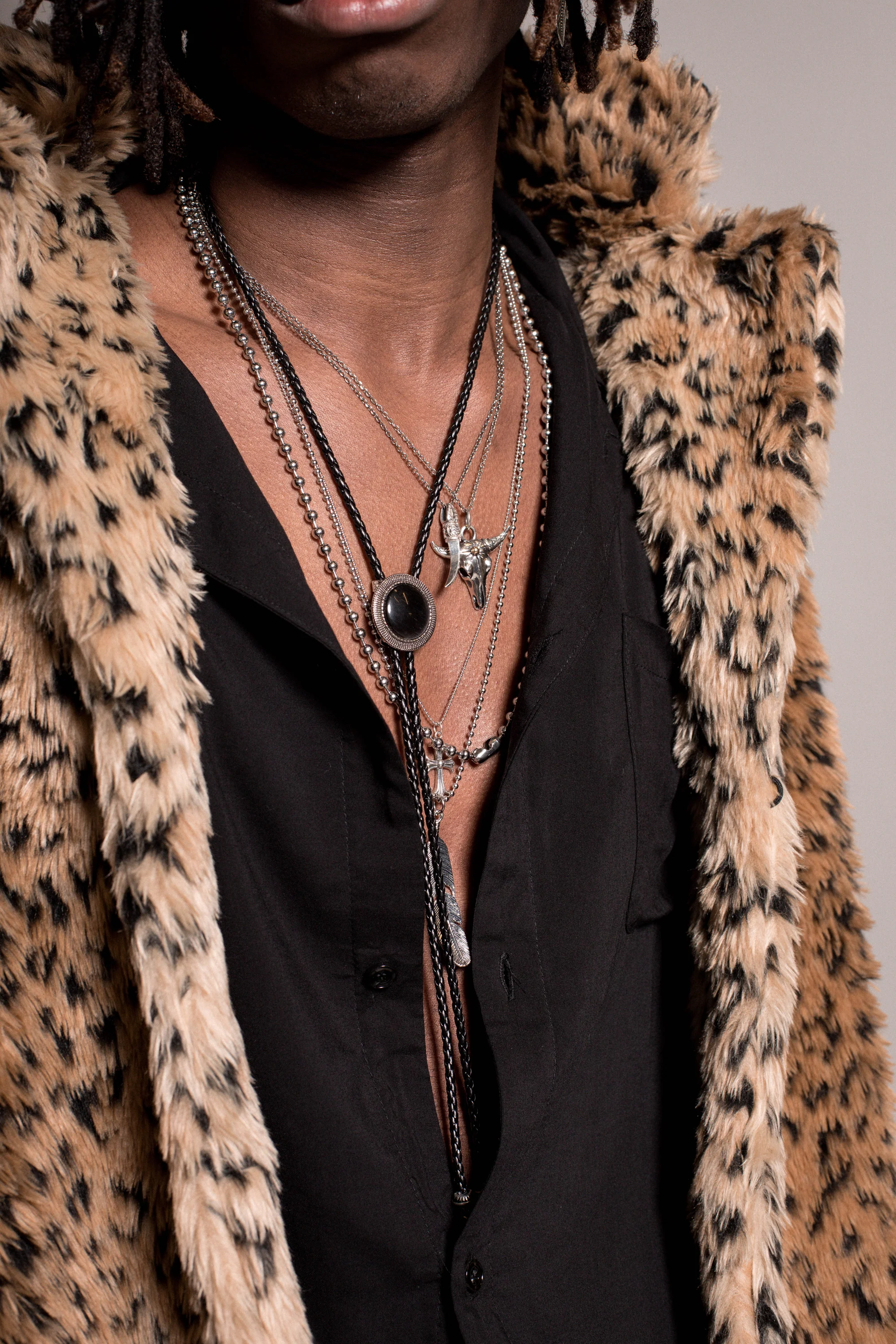 THE WESTERN BOLO TIE. Inject a hint of western spirit into any outfit with this Black Stone Bolo Tie. Crafted from 100% Braided Leather Rope and featuring stainless steel tips.Â