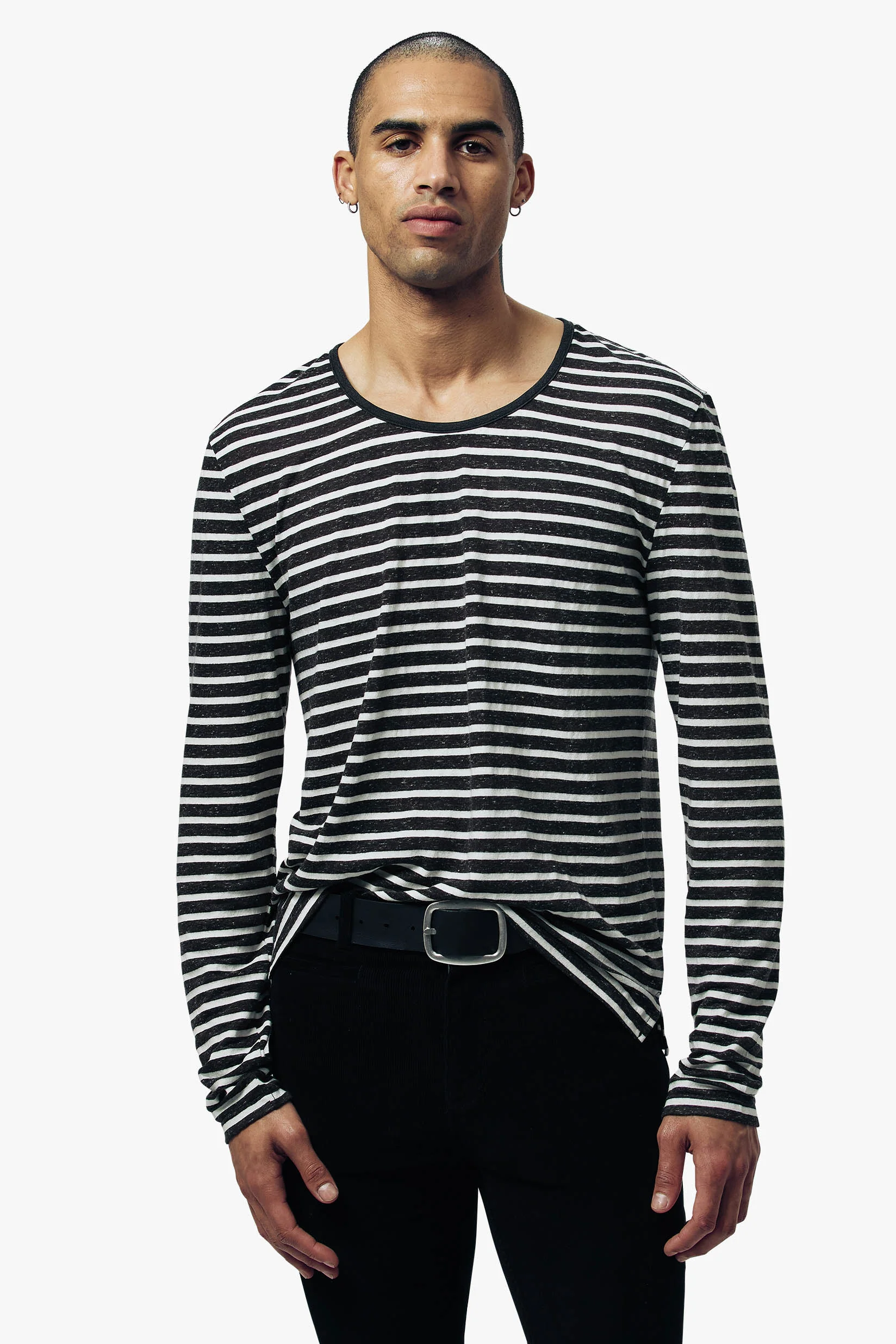 Cut from a lightweight slub fabric that feels lived-in from the first wear, The Bowery Long Sleeve Stripe Tee channels the raw edge of basement shows and late-night dive bars.